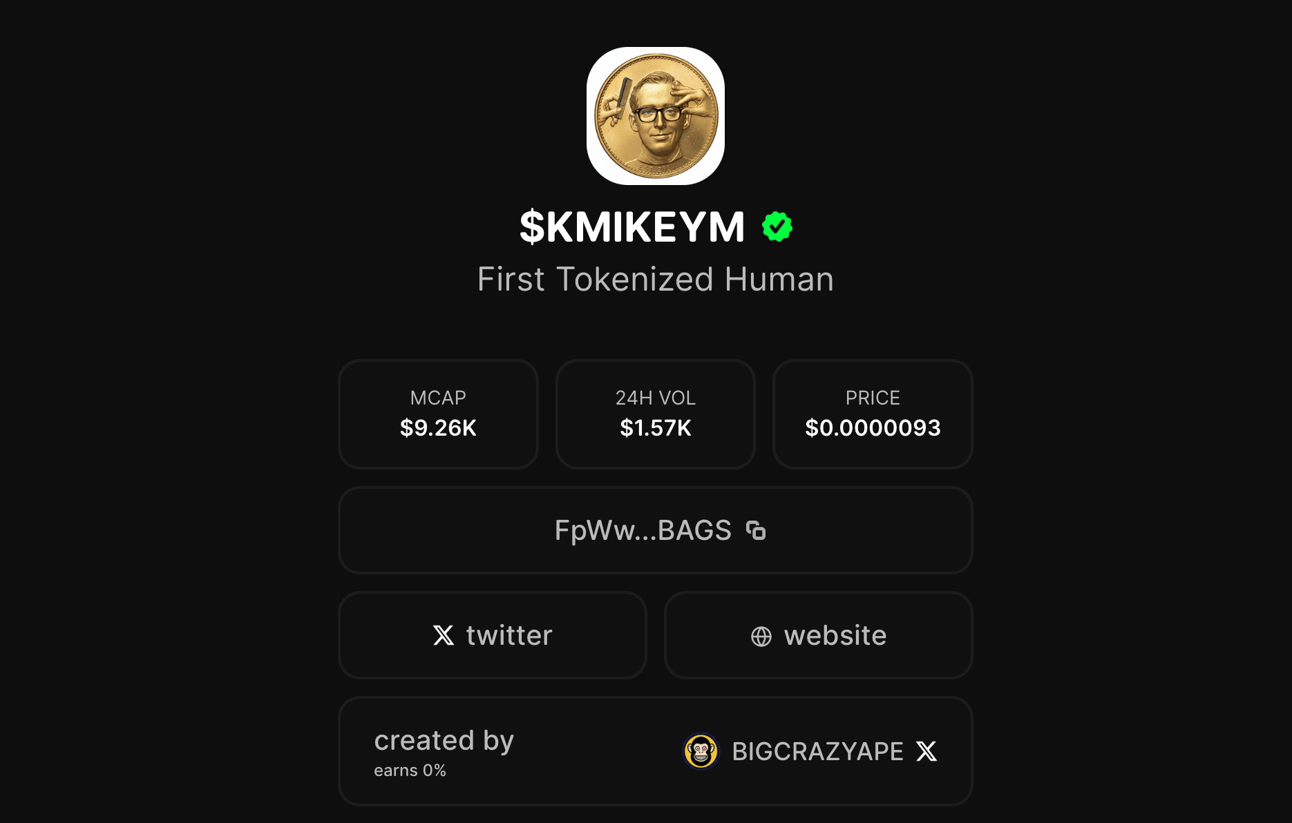 A few weeks ago, someone created a token called $KMIKEYM on bags.fm.